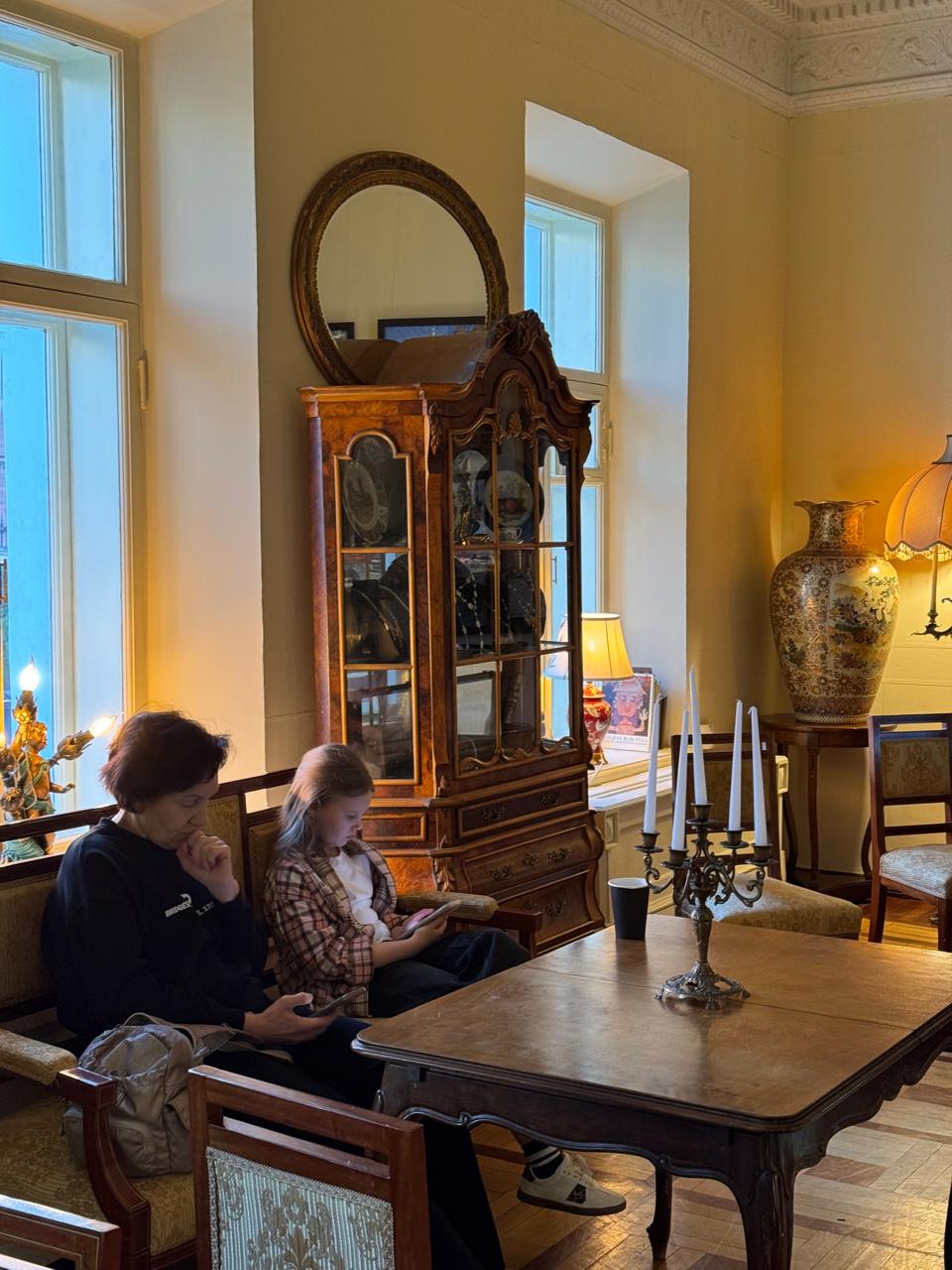 Интерьеры особняка наполнены изысканными предметами старины из Европы и царской России. Здесь можно увидеть эксклюзивные печатные машинки, под пальцами которых, возможно, рождались великие произведения; грамофоны, хранящие мелодии прошедших эпох; британскую чайную посуду, помнящую светские беседы аристократов.Особую гордость коллекции составляет фарфор – от Императорского фарфорового завода до частных производств Гарднера, Попова и Кузнецова. Европейский фарфор представлен такими легендарными марками как Meissen, Sèvres и Royal Copenhagen. Каждый предмет – произведение искусства, созданное мастерами прошлого.