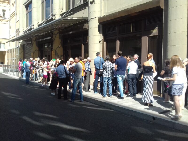 Обманутые дольщики ЖК «Царицыно» 10 августа провели массовую подачу заявлений в Приемную Президента Российской Федерации (ул. Ильинка, д.23/16) в порядке живой очереди. Чиновники Приемной Президента РФ попытались нам воспрепятствовать. Нас отказались пускать внутрь здания, в том числе матерей с детьми. Представители правоохранительных органов без видимых причин задержали одну из наших активисток и увезли ее в неизвестном направлении.