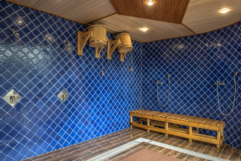 После разогрева нужно немного отдохнуть, но в Мореон SPA даже отдыхать после парной можно с пользой для здоровья. К примеру, я минут десять прогуливаюсь по целительной дорожке Кнайпа, где зоны с холодной водой (уровень которой доходит до колен) чередуются с зонами горячей. Вот как раз за эти десять минут организм становится готовым продолжать процедуры уже в русской бане.