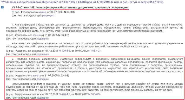 Стоит отметить, что подобное нарушение закона карается по статье 142 УК РФ: штраф от 200 до 500 тысяч рублей, принудительные работы сроком до трех лет, либо лишение свободы.Несмотря на то, что по факту «рисовали» подписи не кандидаты, Яшин, Соболь, Жданов и Гудков могут пройти по делу в качестве подстрекателей и организаторов преступной деятельности, об этом говорится в статье 33 УК РФ.