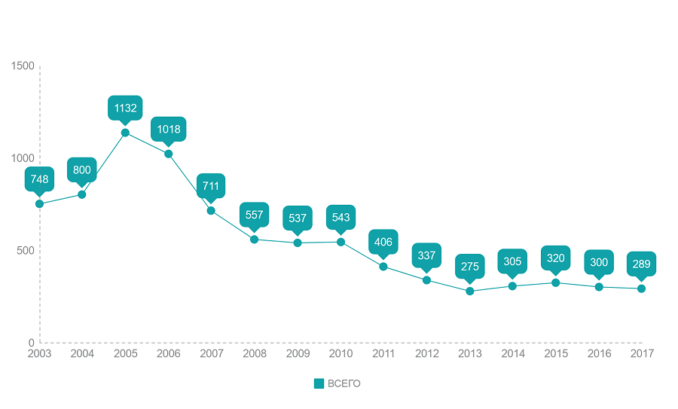 График количества совершенных врезок в МТ на территории РФ (2003-2017гг)
