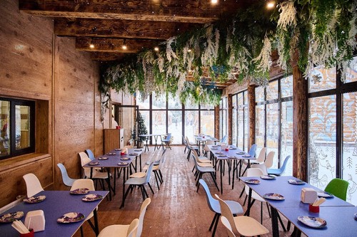 На территории появился большой фудкорт и отдельная зона для проведения чаепития для экскурсионных групп. Это решение позволит разделить поток посетителей. На фудкорте представлена разнообразная линейка готовой еды: салаты, супы и вторые блюда. Можно угоститься авторскими пирожными, выполненными в новогодней тематике: елки, шишки, имбирные пряники.