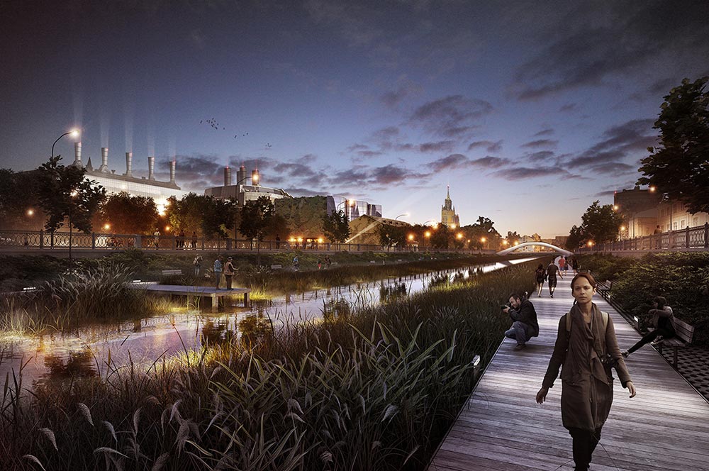 Современный взгляд на развитие прибрежных территорий Москвы-реки, по замыслу Департамента по градостроительной политике, предполагает озеленение русла главной водной артерии в центре столицы.