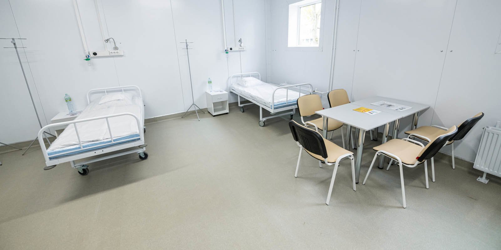 Для эффективной работы медперсонала оборудованы душевые, санузлы, гардеробные и комната отдыха. Также для эпидемиологической безопасности обустроены шлюзы и санпропускники, регулярно проводится проветривание и дезинфекция поверхностей.