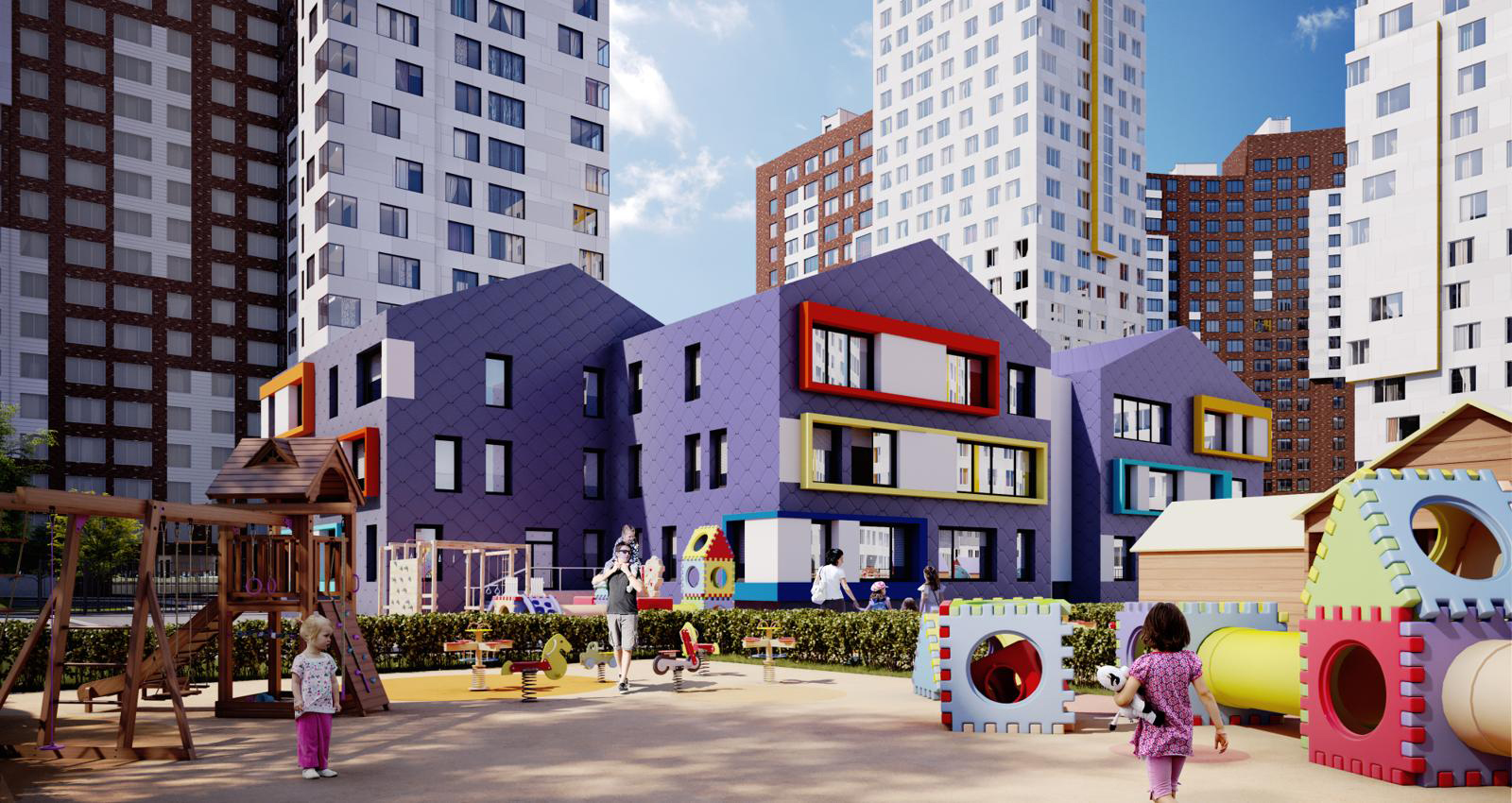 Помимо этого, завершается строительство школы «Логика» и детского сада«Белый кролик» в ЖК «Испанские кварталы» поселения Сосенское. Садик с ассиметричными окнами появится на территории бывшей промзоны «ЗИЛ». Часть учреждений будет построена на средства инвесторов и переданы на баланс города.