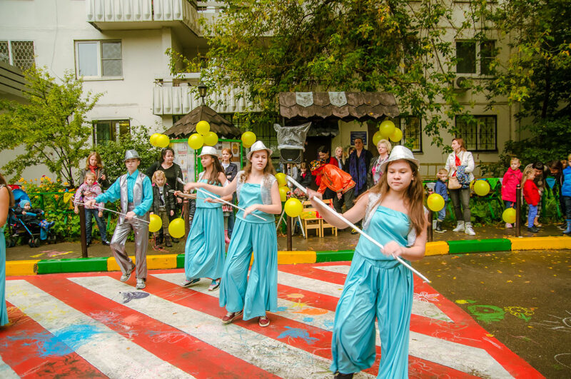 Дети прыгали, вертелись, пританцовывали в ритме звучащих на всю округу зажигательных ритмов. Преподаватели играли с детьми, вовлекая присутствующих в мир детства, радости и счастья. За 60 минут, которые мы провели на открытии нового учебного творческой студии, мы не видели ни одного из гостей, покинувших этот осенний праздник. Все с восторгом играли танцевали и потом, мы все вместе спели гимн Москвы.