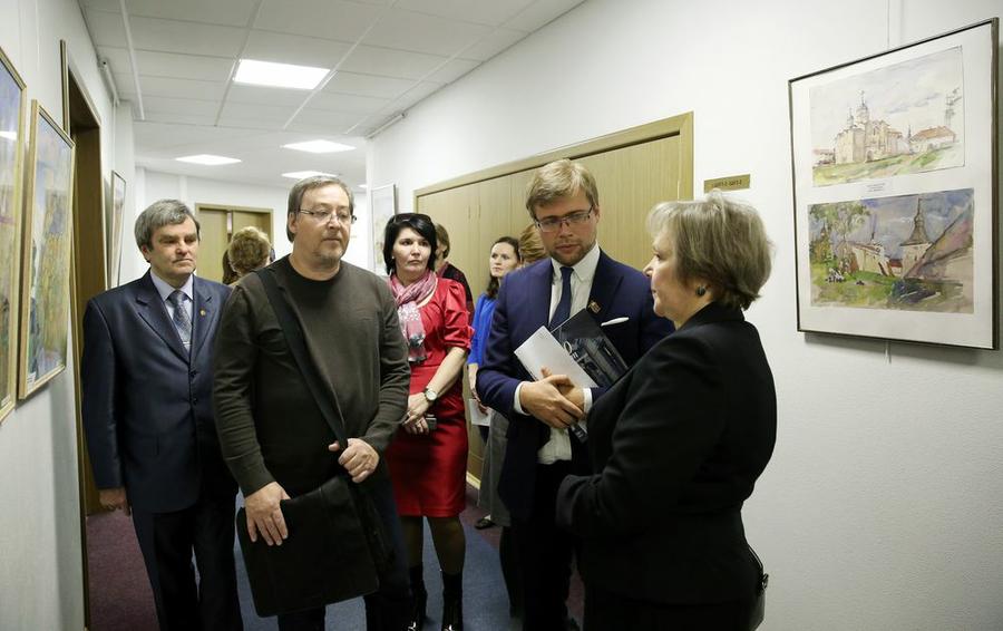 Директор школы Екатерина Серова поблагодарила фракцию КПРФ за помощь в организации выставки и рассказала о представленных работах и их авторах.