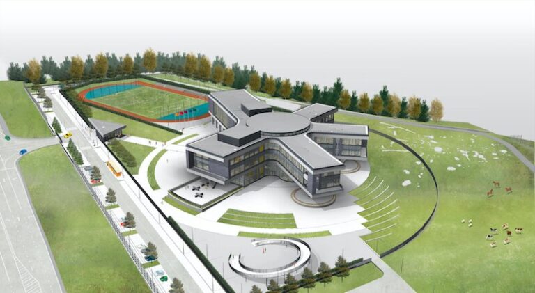 Осенью 2020 года здание новой школы откроет свои двери для учеников 1-11 классов. Авторы проекта предложили отталкиваться в разработке концепции пространства от идеи создания современного города, центром которого станет многофункциональный атриум с амфитеатром. Стены – трансформеры, выдвигающиеся экраны превращают пространство в бальный зал, театр или коммуникационный хаб, кроме того, это открытая зона для презентаций и проектной работы.