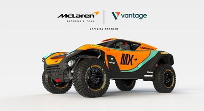Vantage is an Officer Partner of McLaren Extreme E (MX) team, with its branding featured on the chassis side and roof of the race car.