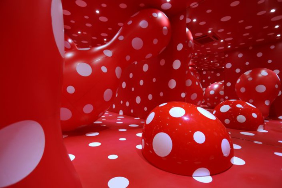 «Теория бесконечности» — так называется один из выставочных проектов талантливой японской художницы. 86-летняя уже давно экспериментирует с границами реальности и фантастики. Судя по таким инсталляциям, как «Бесконечная зеркальная комната», «Указатель в бесконечное пространство», — у нее это получается феноменально. Кстати, ее творчество имеет свой неповторимый почерк — использование красно-белого узора.